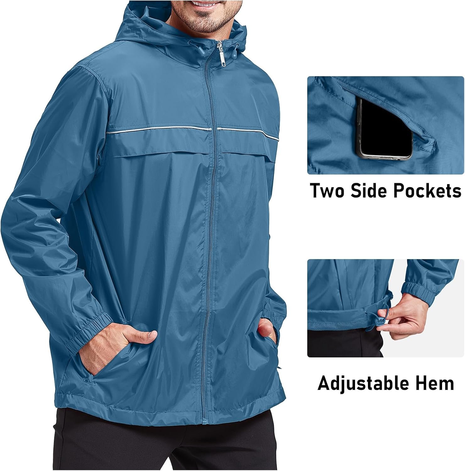 - Low-Light Visibility: The lightweight rain jacket for men puts a reflective stripe on the chest, making you highly visible at night and in the low-light environment